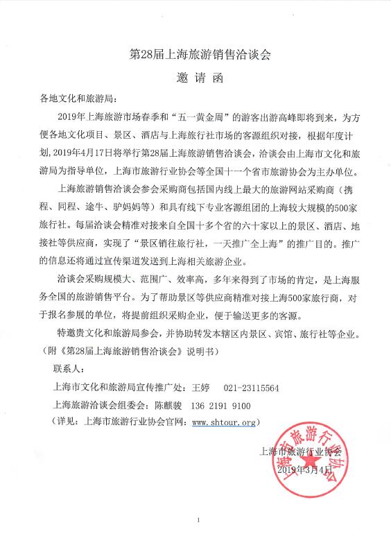 2019年“第二十九届上海旅游销售洽谈会”即将举办