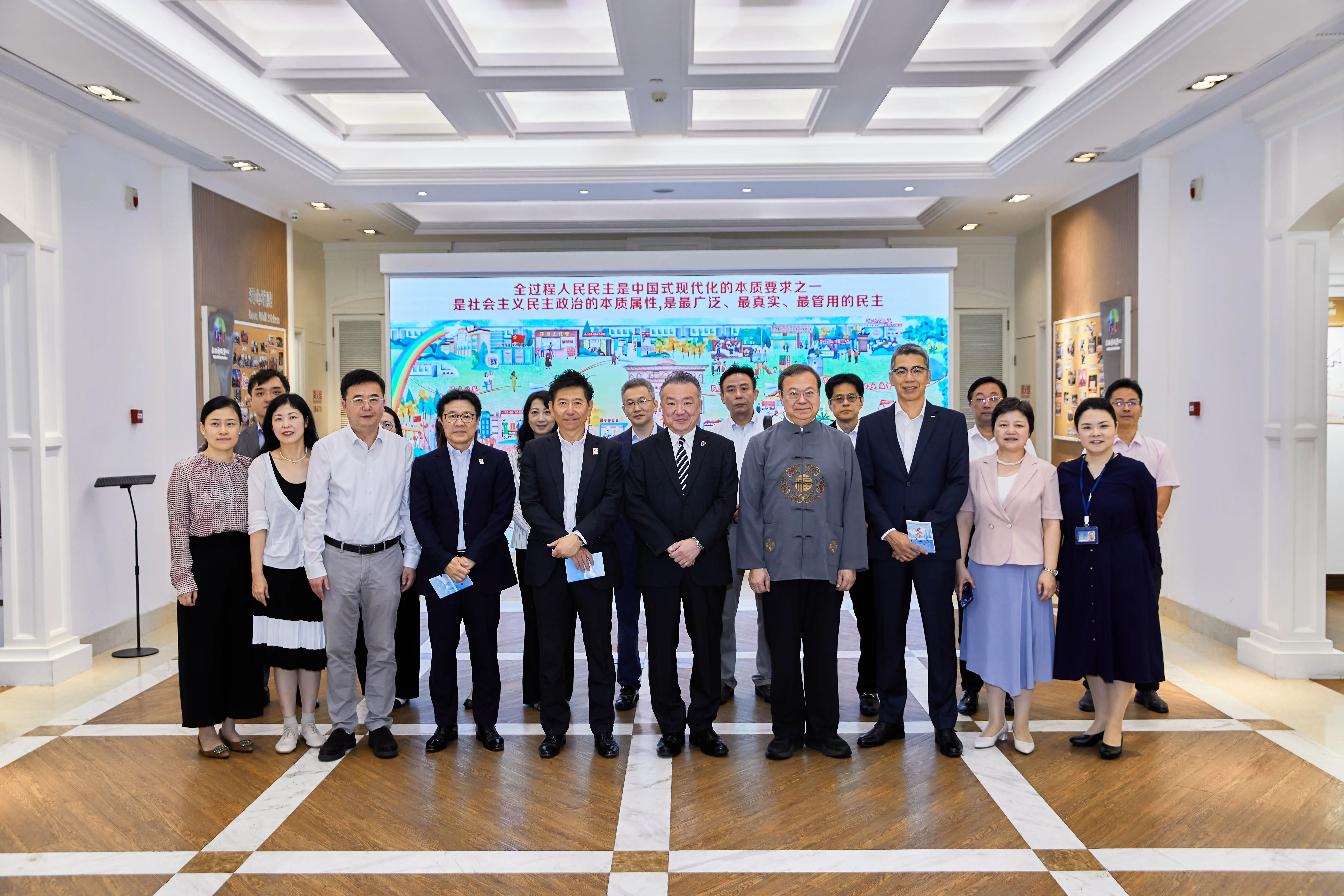 交流会前,中日嘉宾一起参观了古北市民中心,了解全过程人民民主重大理念,参观虹桥海外人才荟、“一网通办”古北市民中心服务站、昆曲澎派艺术中心、老年助餐点等。