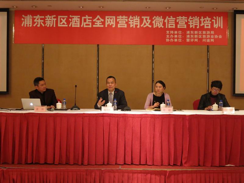 4月15日、16日,为期2天的浦东新区酒店全网营销及微信营销培训在上海明悦大酒店顺利举行,旨在通过此次培训,酒店能结合自身情况,逐渐建立社交媒体的统一管理,使得酒店微信、微博更加系统化且更具规模和影响力。浦东新区近60家酒店营销负责人参加了此次培训,浦东新区旅游业协会副会长、外高桥皇冠假日业主方总经理戴培仁、问途信息技术有限公司创始人黄昕、慧评网高级营销副总裁冯洁等出席会议。会议由浦东新区旅游业协会秘书长许婷主持。